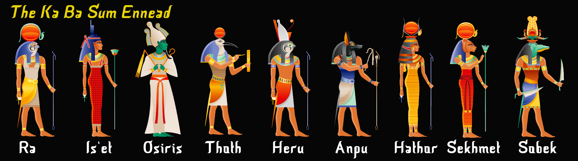 The nine Egyptian gods (messengers and higher beings) are as follows: